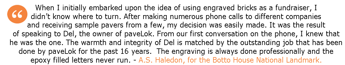 Special Notes: 5+ indicates over 5 years of sales; 1000+ sales over 1000 engraved pavers